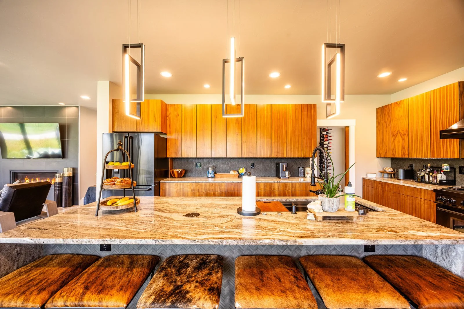 Introducing The Rock Villa — A bold fusion of modern elegance and rock and roll, expertly curated by Rebel Designs, a premier name in luxury interiors. Spanning nearly 5,000 square feet of finished living space, every inch is designed to impress. Step inside to find custom Venetian plaster accent walls infused with real metals, including a dramatic floor-to-ceiling installation along the Brazilian walnut staircase. This home is flooded with natural light, thanks to walls of oversized windows that frame uninterrupted mountain views from several rooms.